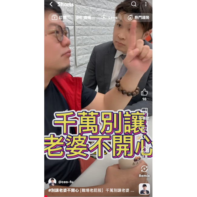 在這支別讓老婆不開心 的短影音中,我們看到了一個亙古不變的真理:惹老婆生氣,下場通常很慘。影片最後那句「是要認養還是購買」,雖然是在開玩笑,但在我富總眼裡,這簡直就是企業經營的終極哲學!